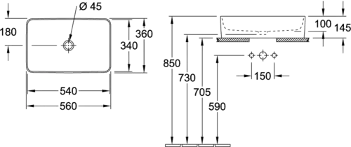 Villeroy & Boch Collaro opzetwastafel, rechthoekig, zonder kraangat, zonder overloop, 560x360mm