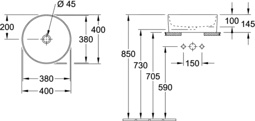 Villeroy & Boch Collaro opzetwastafel, rond, zonder kraangat, zonder overloop, 400x400mm