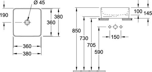 Villeroy & Boch Collaro opzetwastafel, vierkant, zonder kraangat, zonder overloop, 380x380mm