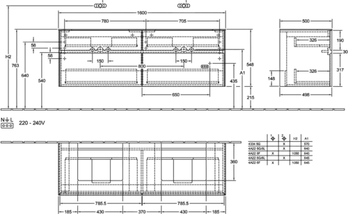 - voor twee wastafels