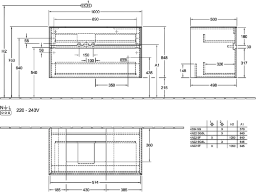 - 1 x wastafelonderkast