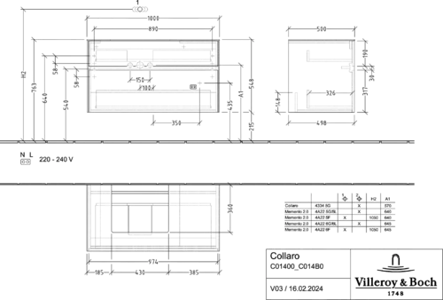Villeroy & Boch Collaro wastafelmeubel, wastafel links, wandhangend, 1000x548x500mm