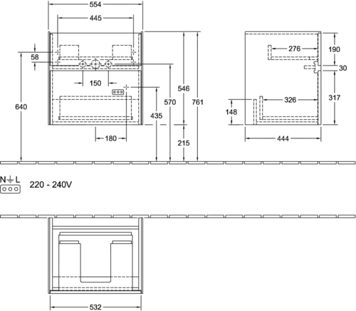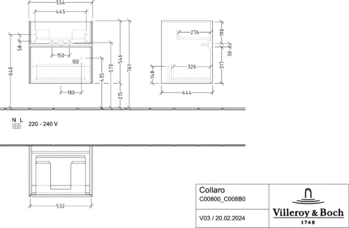 Villeroy & Boch Collaro wastafelonderkast, 2 uittrekelementen, midden wastafel, 554x546x444mm