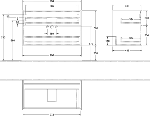 Villeroy & Boch Finion wastafelonderkast, 2 laden, 996x591x498mm