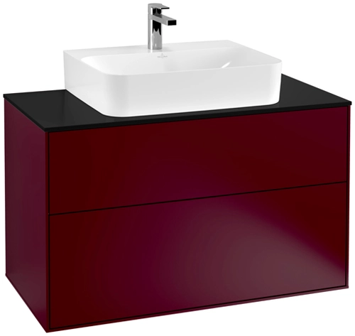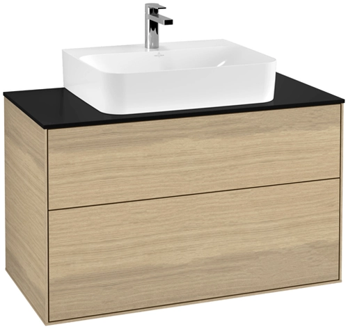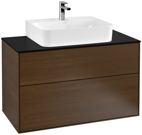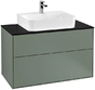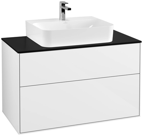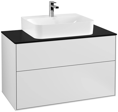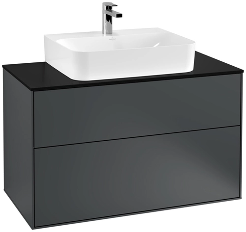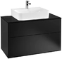 Villeroy & Boch Finion wastafelonderkast, 2 laden, met verlichting, midden wastafel, 1000x603x501mm, Glass Matt Black