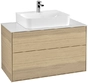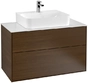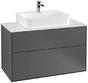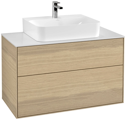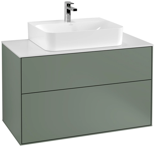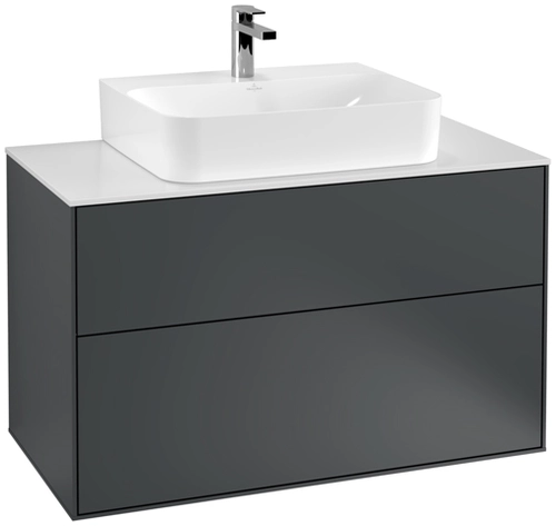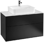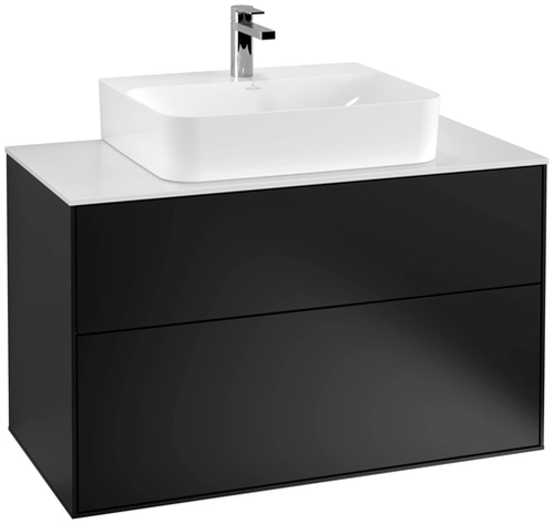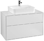 Villeroy & Boch Finion wastafelonderkast, 2 laden, met verlichting, midden wastafel, 1000x603x501mm, Matglas Wit
