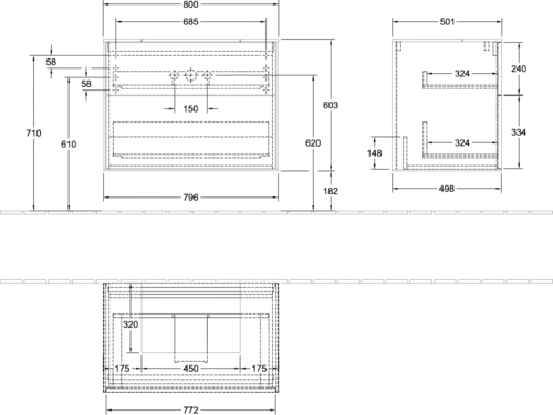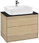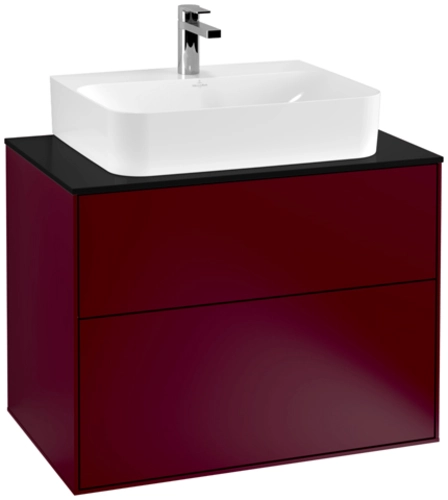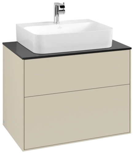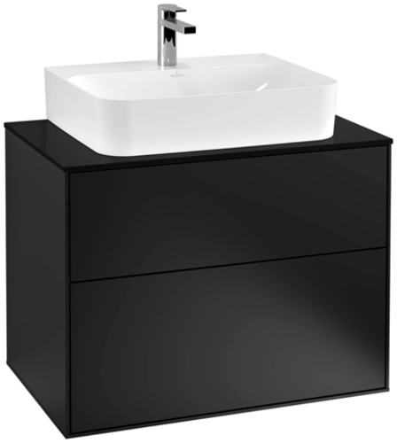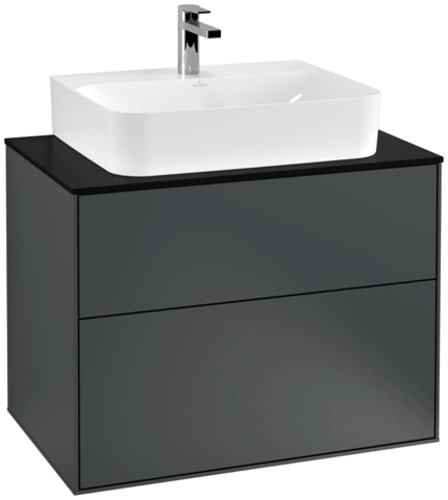 Villeroy & Boch Finion wastafelonderkast, 2 laden, midden wastafel, 800x603x501mm, Glas Matt Black