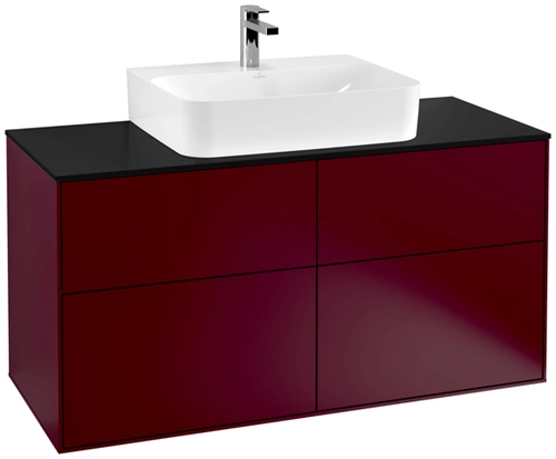 Villeroy & Boch Finion wastafelonderkast, 4 laden, midden wastafel, 1200x603x501mm, glas Matt Black