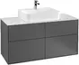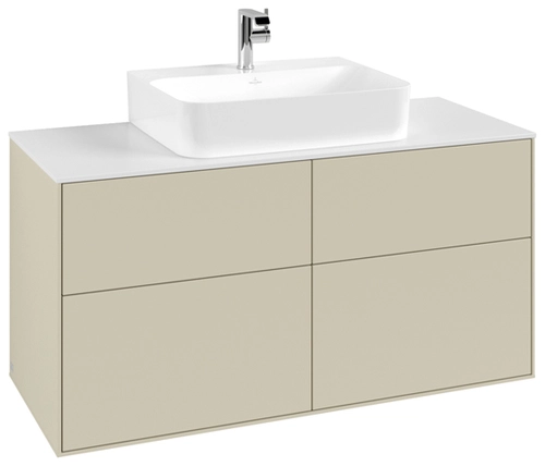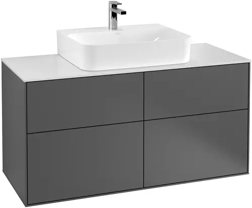 Villeroy & Boch Finion wastafelonderkast, 4 laden, midden wastafel, 1200x603x501mm, glas Matt White