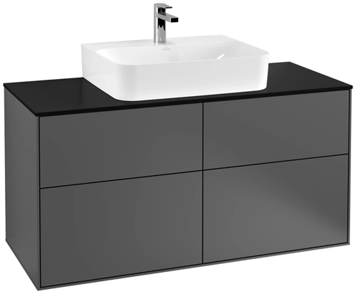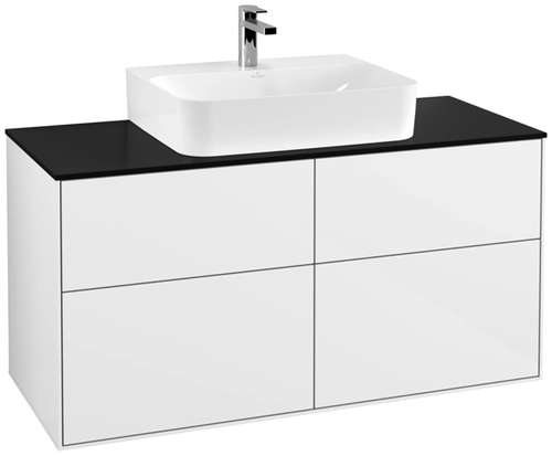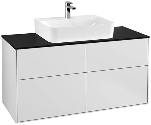 Villeroy & Boch Finion wastafelonderkast, 4 lades, met verlichting, 1200x603x501mm, Glass Matt White