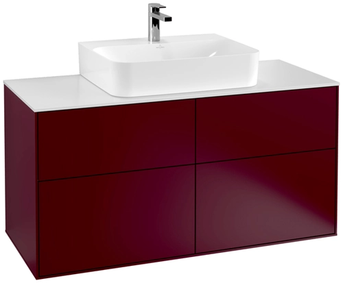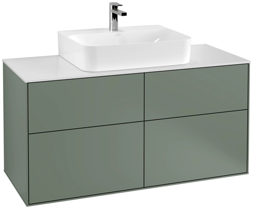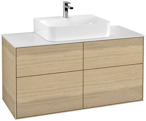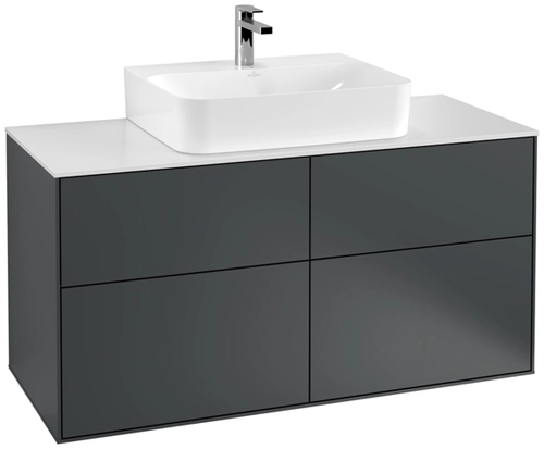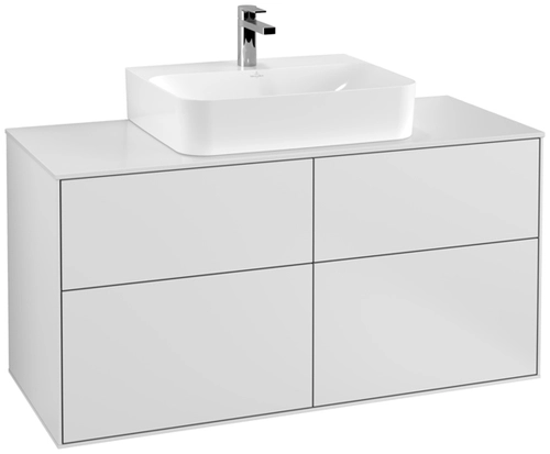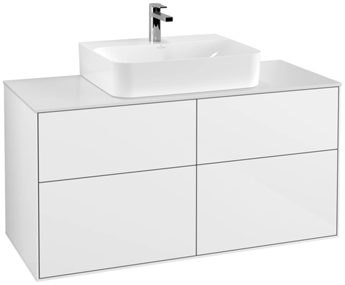Villeroy & Boch Finion wastafelonderkast, 4 lades, met verlichting, 1200x603x501mm, Glass Matt White