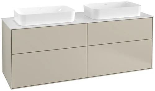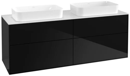 Villeroy & Boch Finion wastafelonderkast, 4 uittrekelementen, voor 2 wastafels, met kraangat, 1600x603x501mm, glas Matt White