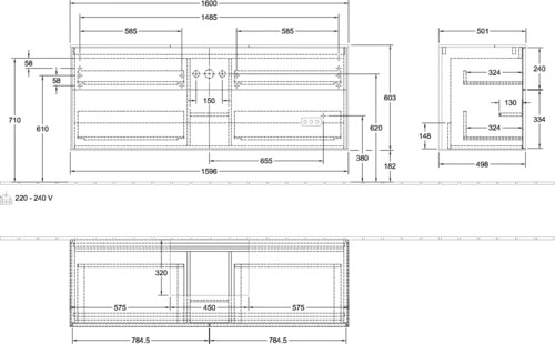 - Afmetingen: 1600 x 603 x 501 mm