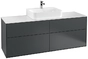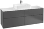 Villeroy & Boch Finion wastafelonderkast, met verlichting, midden wastafel, 1600x603x501mm, glas Matt White