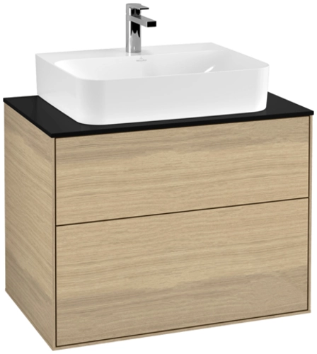Villeroy & Boch Finion wastafelonderkast, met verlichting, wastafel midden, 800x603x501mm, glas Matt Black