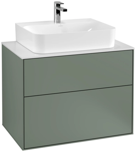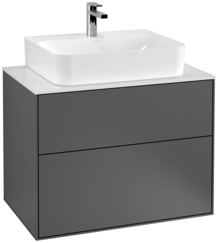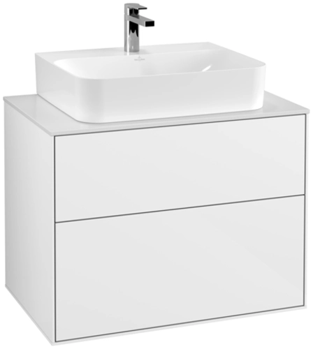 Villeroy & Boch Finion wastafelonderkast, met verlichting, wastafel midden, 800x603x501mm, glas Matt White