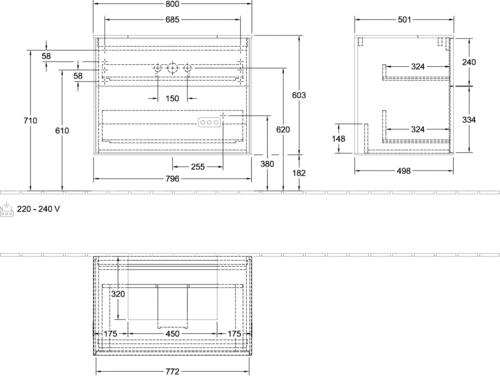 - Afmetingen: 800 x 603 x 501 mm