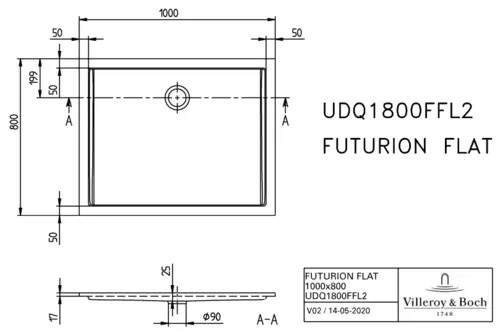 Villeroy & Boch Futurion Flat rechthoekige douchebak, Quaryl®, 1000x800mm
