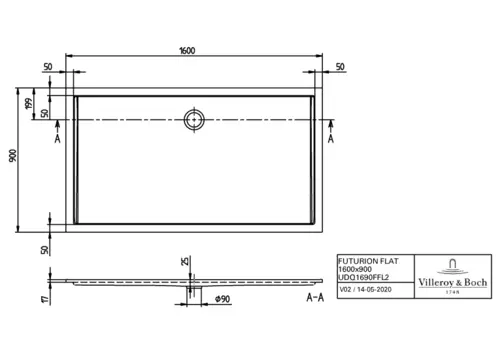 Villeroy & Boch Futurion Flat rechthoekige douchebak, Quaryl®, 1600x900mm