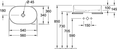 Villeroy & Boch Ovale opzetwastafel, zonder kraangat, zonder overloop, 560x360mm