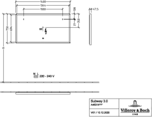 Villeroy & Boch Subway 3.0 spiegel met LED verlichting, rechthoekig, 1400x750x47,5mm