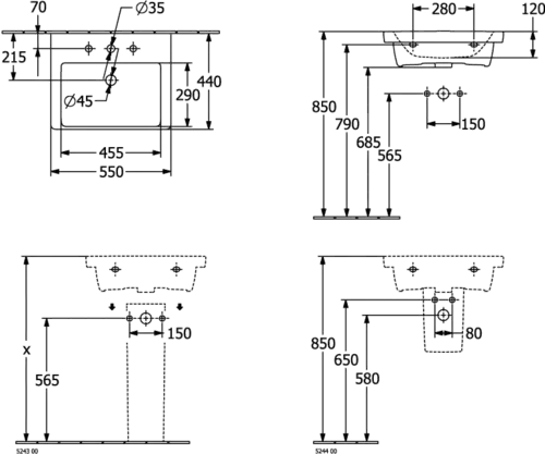 • bij gebruik van een wandkraan adviseren wij een uitsteek van minimaal 210 mm