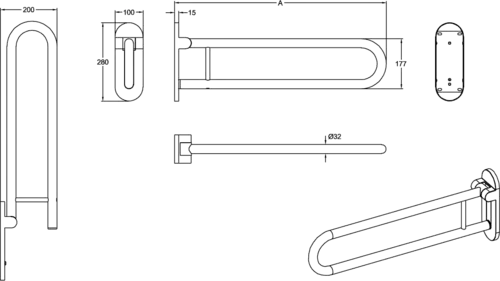 Villeroy & Boch ViCare functie inklapbare handgreep, 750x280mm