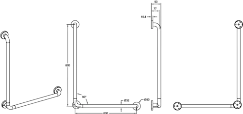 - 1 x Omkeerbare wandgreep 90 graden