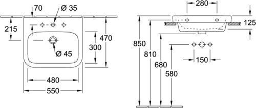 Villeroy & Boch Architectura wastafels, rechthoekig, 1 kraangat, met overloop, gepolijste onderkant, 550x470mm
