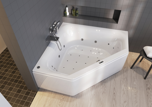 RIHO Austin Eck-Badewanne, mit Bliss-System, 2-Sitzer, 145x145x48cm, 270 Liter, weiß