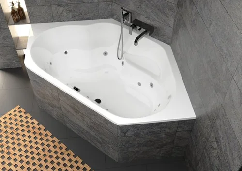 RIHO Winnipeg Eck-Badewanne, mit Flow-System, Einbau, 2-Sitzer, 145x145x47,5cm, 225 Liter, weiß