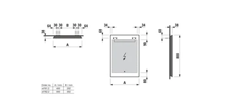 LAUFEN Leelo mirror with integrated horizontal LED lighting, aluminium frame, 450 mm, version with 1 touch sensor switch