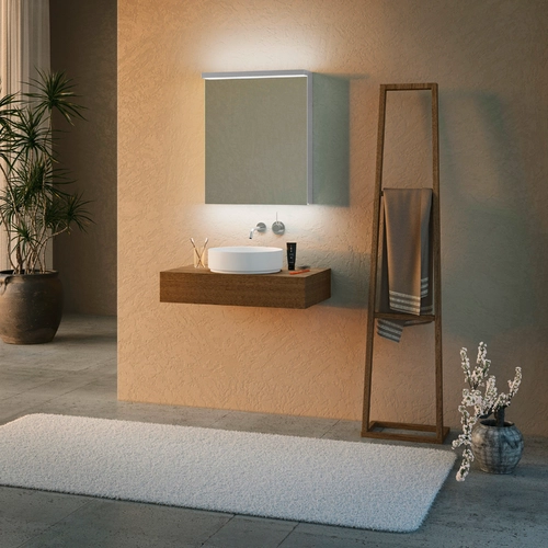 Schneider BORDO TW LED-Lichtspiegelschrank, eine Tür wechselbarer Anschlag, Steckdose rechts, 59,5x72,6x17,8cm