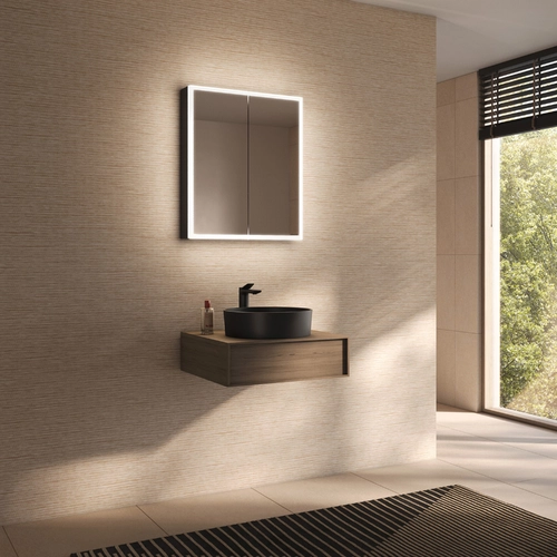 Schneider GLOW D2W Spiegelschrank, 2 Türen 30/30cm, 613x136x736mm, rundum Beleuchtung, Dim2Warm