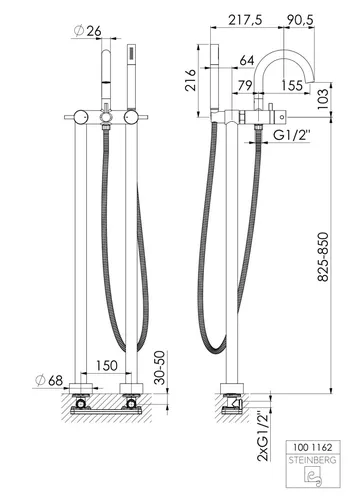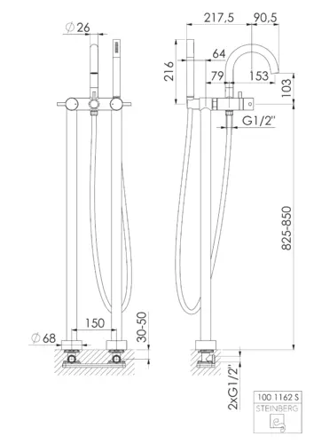 Steinberg Serie 100 Wannenarmatur, freistehend, Ausladung: 231mm