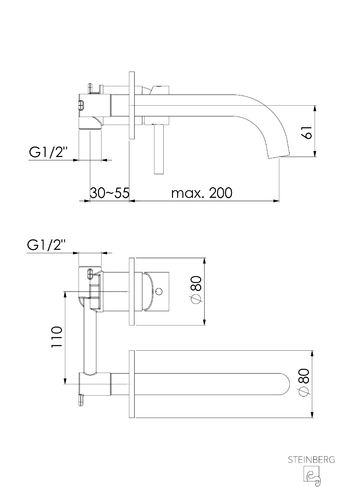 Steinberg Serie 100 Waschtischarmatur, Fertigmontageset, mit Unterputzkörper, Ausladung: 195mm