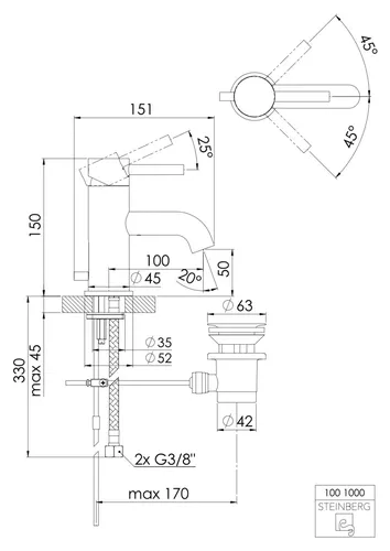 Steinberg Serie 100 Waschtischarmatur, mit Ablaufgarnitur, Ausladung: 100mm