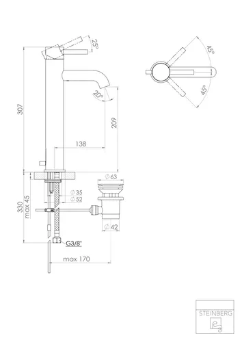 Steinberg Serie 100 Waschtischarmatur, mit Ablaufgarnitur, Ausladung: 128mm