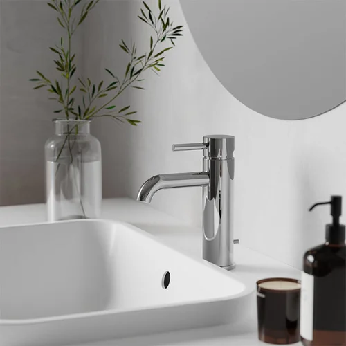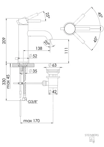 Steinberg Serie 100 Waschtischarmatur, mit Ablaufgarnitur, Ausladung: 128mm