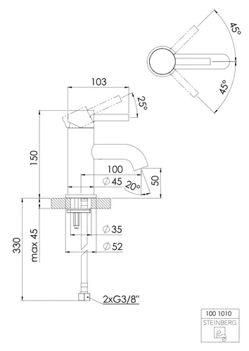 Steinberg Serie 100 Waschtischarmatur, ohne Ablaufgarnitur, Ausladung: 100mm