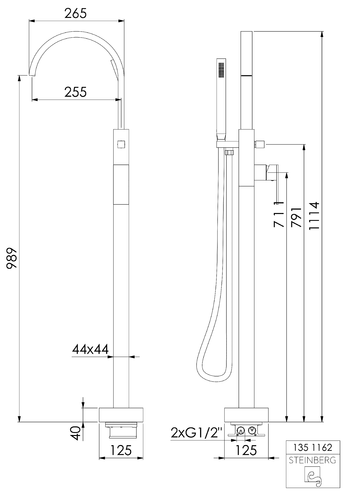 Steinberg Serie 135 Wannenarmatur, freistehend, schwenkbarer Auslauf, Ausladung 254 mm