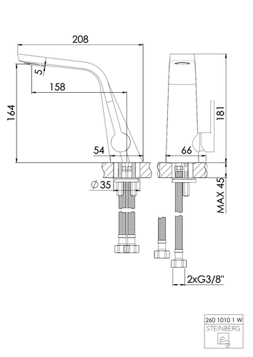 Steinberg Serie 260 Waschtischarmatur, ohne Ablaufgarnitur, Ausladung 158mm