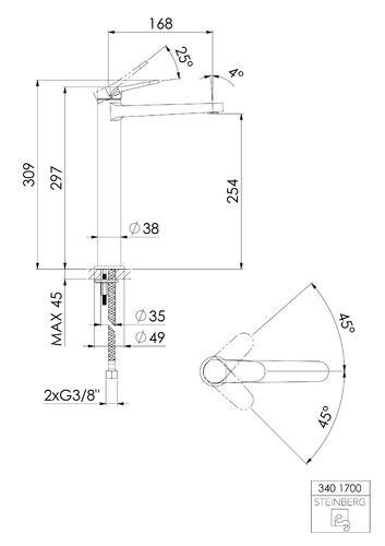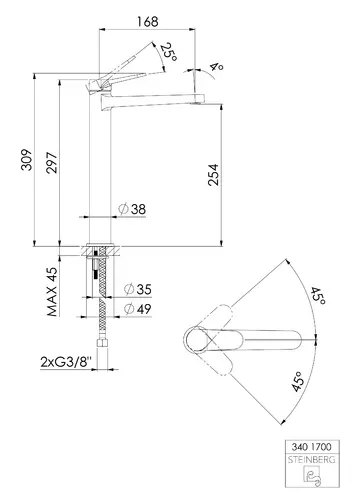 Steinberg Série 340 Mitigeur de lavabo, saillie 168mm, sans garniture découlement