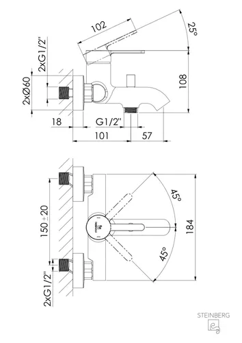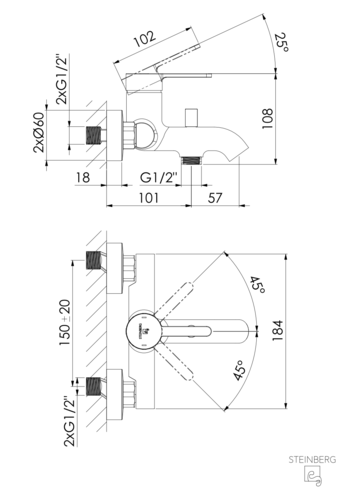 Steinberg Serie 341 Aufputz-Einhebelmischer, für Wanne, mit automatischem Umsteller, Ausladung 158mm