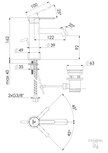 Steinberg Serie 341 Waschtisch-Einhebelmischer mit Keramikkartusche, mit Ablaufgarnitur, Ausladung 122mm