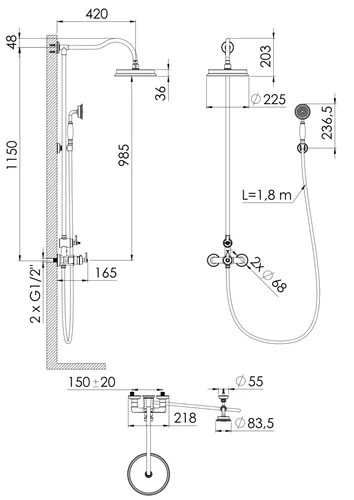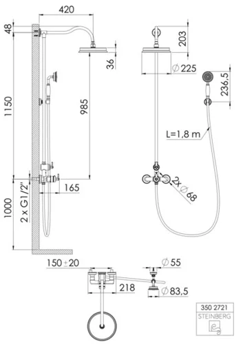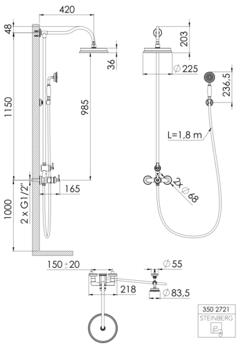 Steinberg Seriesss 350 shower system, complete set, with. thermostat, 1