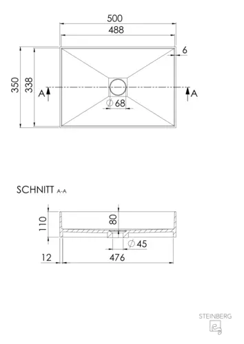 Steinberg Serie 440 lavabo sobre encimera, angular, sin rebosadero, 500x350x110mm, SOLIDSurface