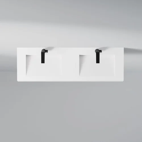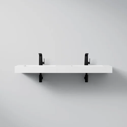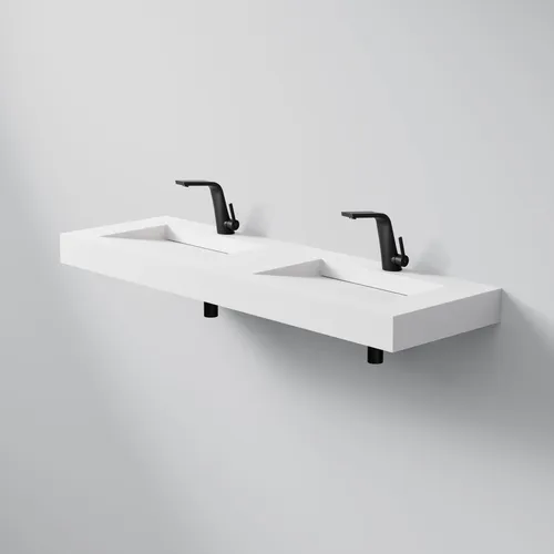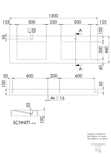 Steinberg Serie 444 Wand-Doppelwaschtisch, 1500x460x100mm, SOLIDSurface, 2 Hahnlöcher, ohne Überlauf