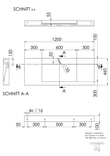 - Maße (BxTxH): 1200 x 460 x 100 mm