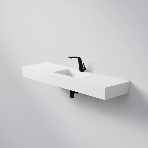 Steinberg Serie 444 Wand-Waschtisch, 1400x400x130mm, SOLIDSurface, 1 Hahnloch, ohne Überlauf